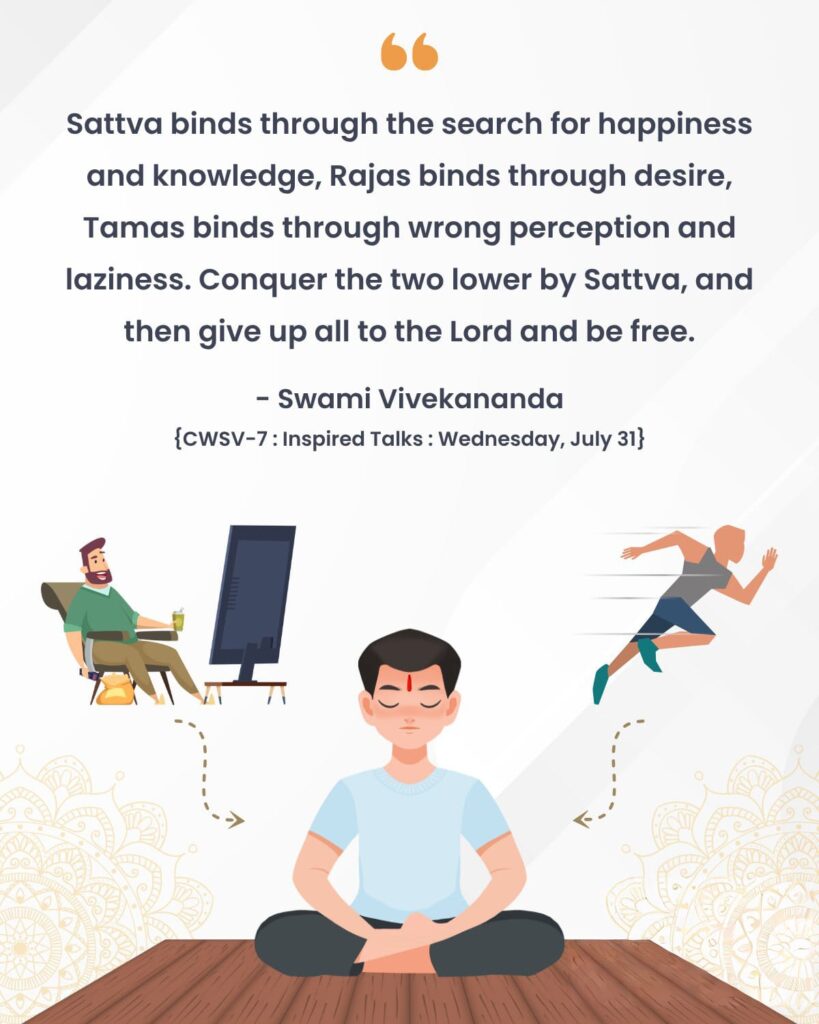 Answer: By the three Gunas.