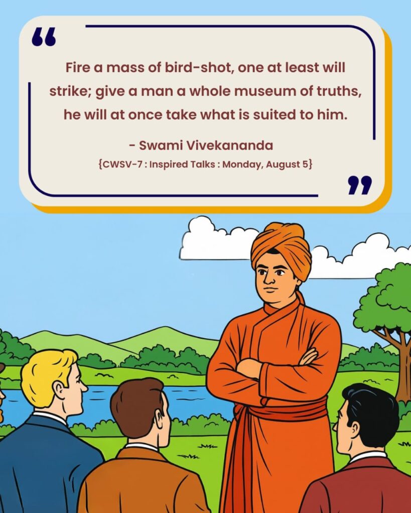 “You see the fun! The teaching was different, according to the recipient’s need. Where can you find a teacher like him?” (Source: Spiritual Talks by the First Disciples of Sri Ramakrishna)