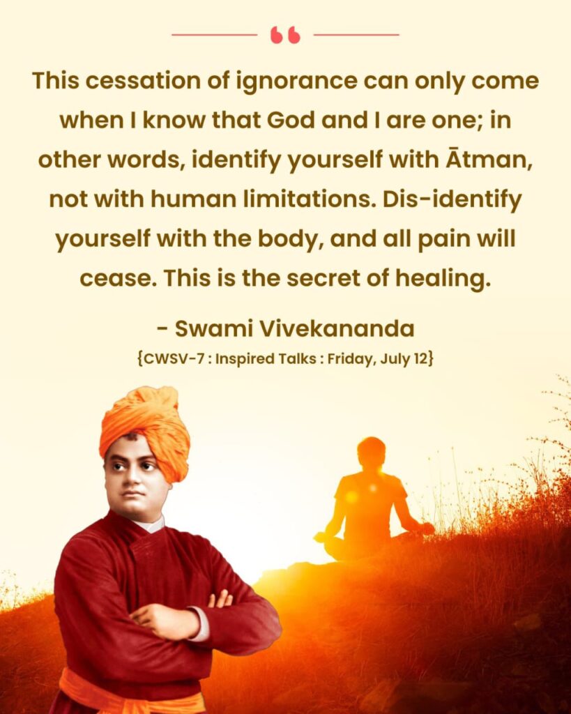 When Swami Vivekananda was giving a speech in America, someone asked him during question hour: Swami, are you doing any kind of hypnotism? Got a straight answer: No, I am removing your hypnosis. You are already hypnotized. I am black, I am white, I am poor, I am rich etc. You are none of these things. You are the soul, that eternal being. That is your true nature. My job is to de-hypnotize you. This is the true religion.
