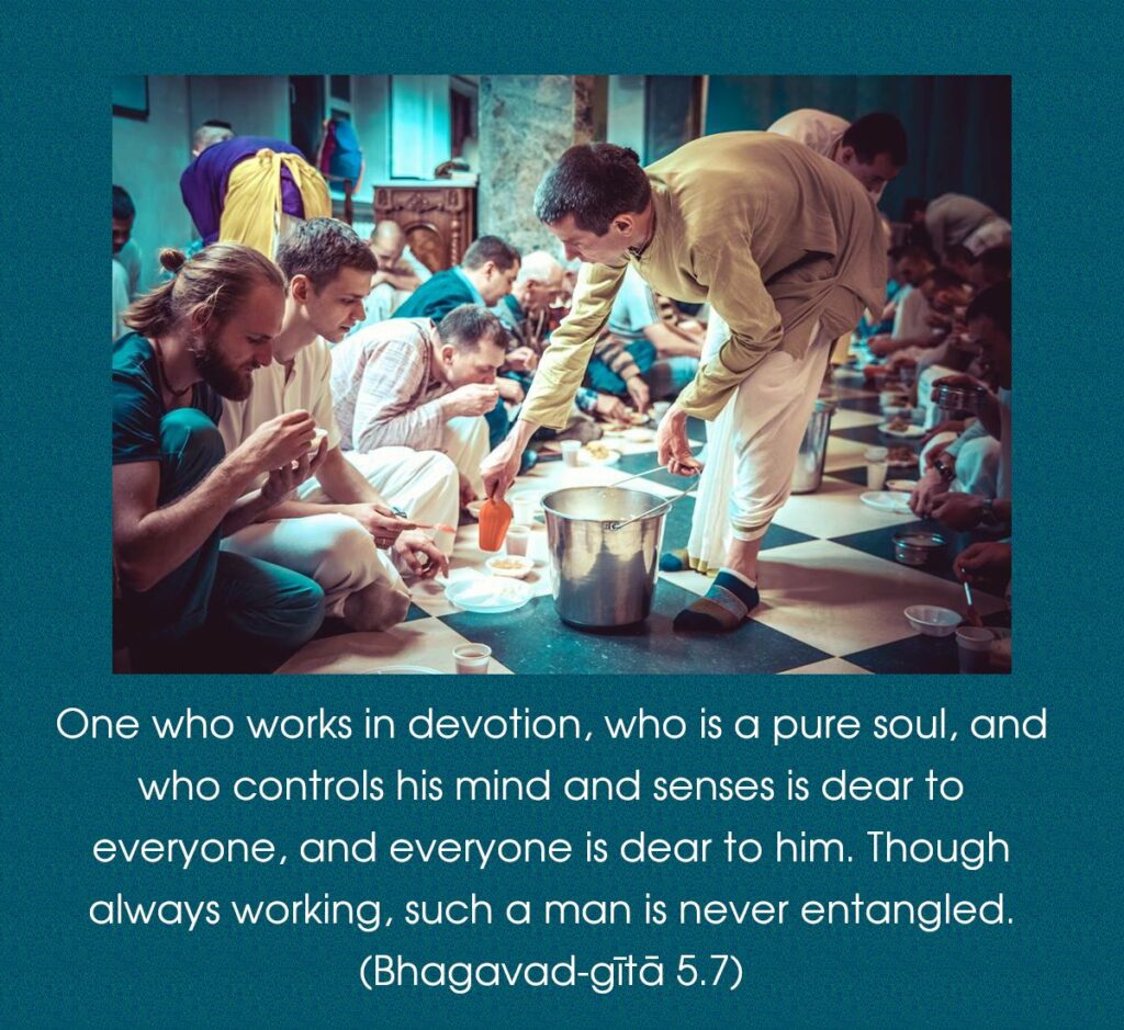 He who is devoted to the yoga of action, with heart purified, with mind-controlled and senses subdued, though acting, is not tainted.
