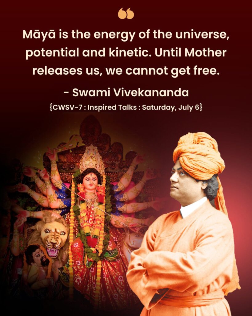 Sri Ramakrishna: “The jnanis, who adhere to the non-dualistic philosophy of Vedanta, say that the acts of creation, preservation, and destruction, the universe itself and all its living beings, are the manifestations of Sakti, the Divine Power. (Known as maya in the Vedanta philosophy.) If you reason it out, you will realise that all these are as illusory as a dream. Brahman alone is the Reality, and all else is unreal. Even this very Sakti is unsubstantial, like a dream.