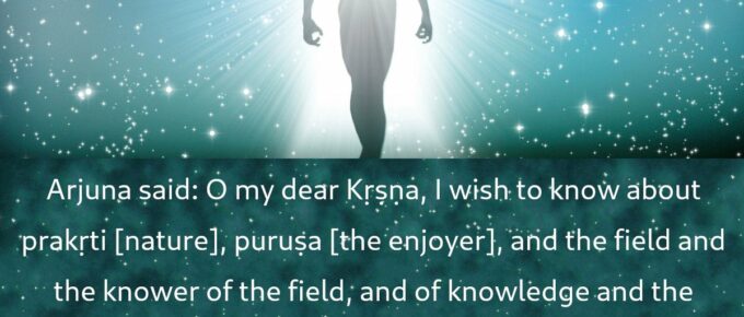 अर्जुन उवाच |प्रकृतिं पुरुषं चैव क्षेत्रं क्षेत्रज्ञमेव च |एतद्वेदितुमिच्छामि ज्ञानं ज्ञेयं च केशव || 1||* arjuna uvāchaprakṛitiṁ puruṣhaṁ chaiva kṣhetraṁ kṣhetra-jñam eva chaetad veditum ichchhāmi …