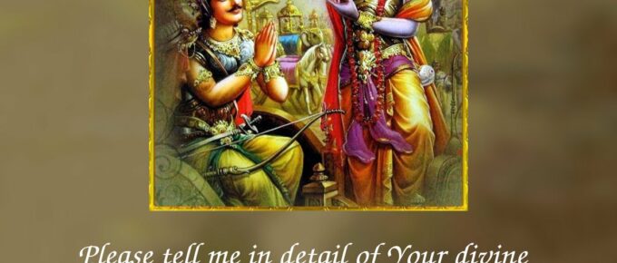 वक्तुमर्हस्यशेषेण दिव्या ह्यात्मविभूतय: |याभिर्विभूतिभिर्लोकानिमांस्त्वं व्याप्य तिष्ठसि || 16|| vaktum arhasyaśheṣheṇa divyā hyātma-vibhūtayaḥyābhir vibhūtibhir lokān imāṁs tvaṁ vyāpya …
