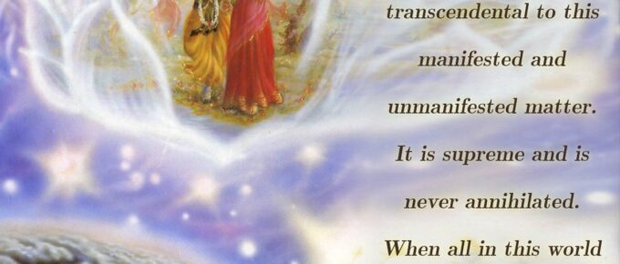 परस्तस्मात्तु भावोऽन्योऽव्यक्तोऽव्यक्तात्सनातन: |य: स सर्वेषु भूतेषु नश्यत्सु न विनश्यति || 20|| paras tasmāt tu bhāvo ’nyo ’vyakto ’vyaktāt sanātanaḥyaḥ sa sarveṣhu bhūteṣhu naśhyatsu na …