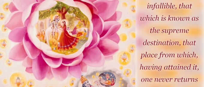 अव्यक्तोऽक्षर इत्युक्तस्तमाहु: परमां गतिम् |यं प्राप्य न निवर्तन्ते तद्धाम परमं मम || 21|| avyakto ’kṣhara ityuktas tam āhuḥ paramāṁ gatimyaṁ prāpya na nivartante tad dhāma paramaṁ …