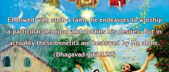 स तया श्रद्धया युक्तस्तस्याराधनमीहते |लभते च तत: कामान्मयैव विहितान्हि तान् || 22|| sa tayā śhraddhayā yuktas tasyārādhanam īhatelabhate cha tataḥ kāmān mayaiva vihitān hi tān saḥ—he; …