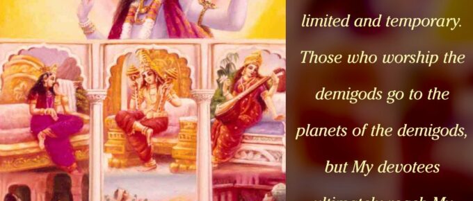 अन्तवत्तु फलं तेषां तद्भवत्यल्पमेधसाम् |देवान्देवयजो यान्ति मद्भक्ता यान्ति मामपि || 23|| antavat tu phalaṁ teṣhāṁ tad bhavatyalpa-medhasāmdevān deva-yajo yānti mad-bhaktā yānti mām …