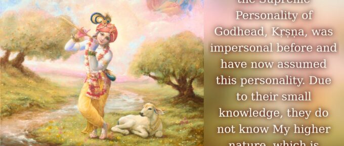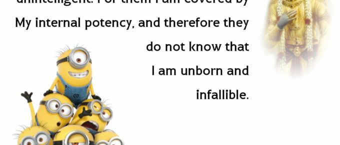 अव्यक्तं व्यक्तिमापन्नं मन्यन्ते मामबुद्धय: |परं भावमजानन्तो ममाव्ययमनुत्तमम् || 24|| avyaktaṁ vyaktim āpannaṁ manyante mām abuddhayaḥparaṁ bhāvam ajānanto mamāvyayam …