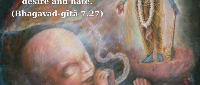 इच्छाद्वेषसमुत्थेन द्वन्द्वमोहेन भारत |सर्वभूतानि सम्मोहं सर्गे यान्ति परन्तप || 27|| ichchhā-dveṣha-samutthena dvandva-mohena bhāratasarva-bhūtāni sammohaṁ sarge yānti …
