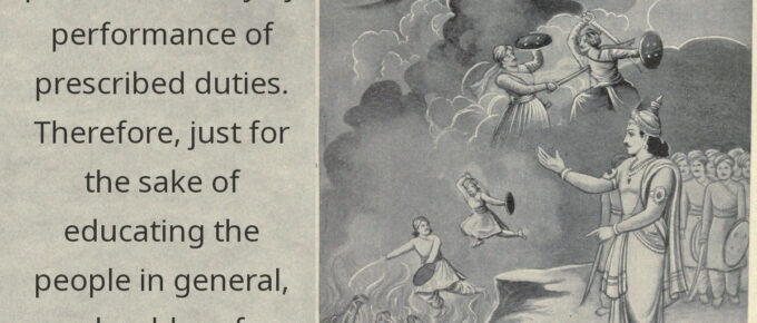 कर्मणैव हि संसिद्धिमास्थिता जनकादय: |लोकसंग्रहमेवापि सम्पश्यन्कर्तुमर्हसि || 20|| karmaṇaiva hi sansiddhim āsthitā janakādayaḥloka-saṅgraham evāpi sampaśhyan kartum arhasi karmaṇā—by the …