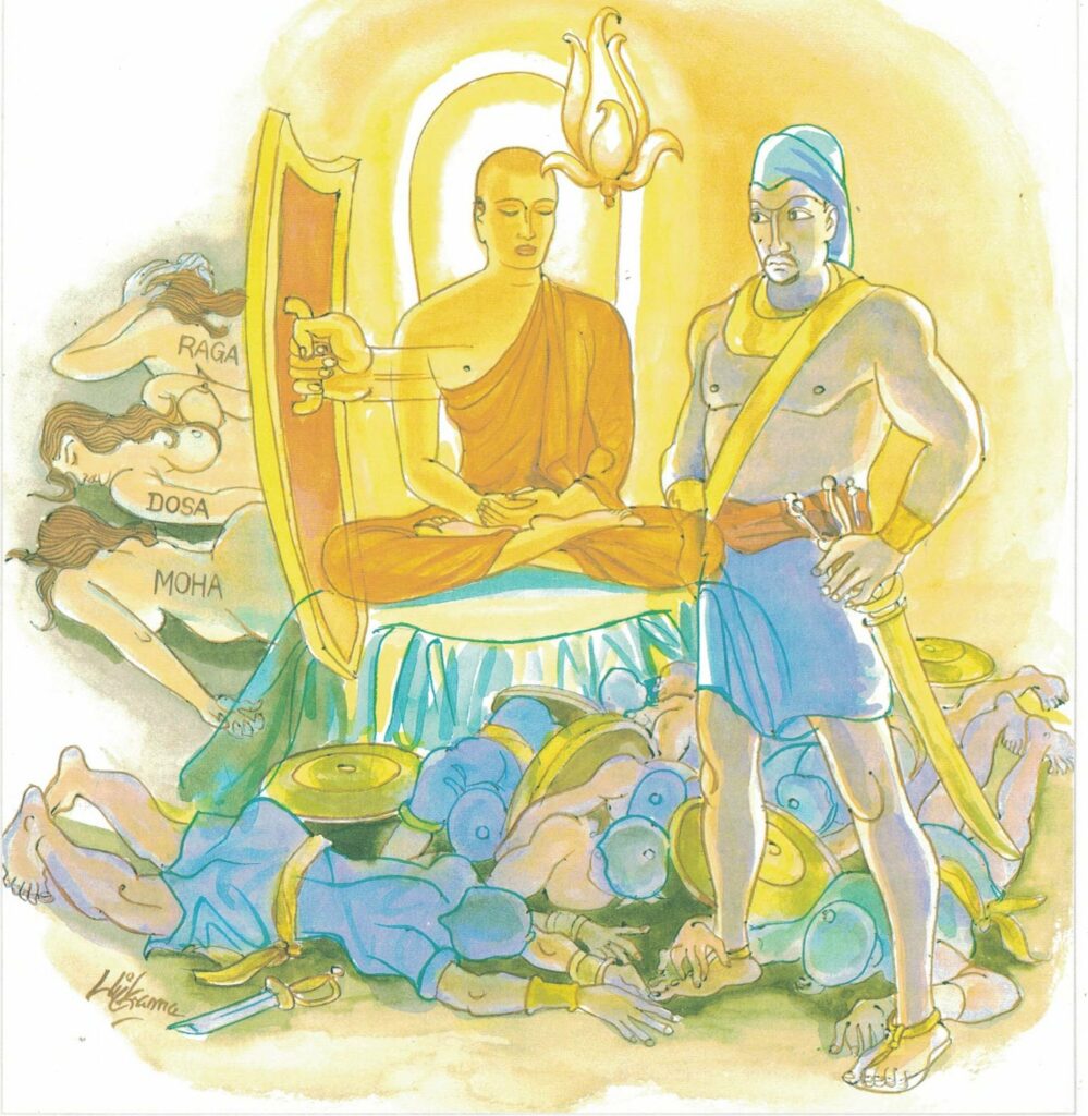 attānaṃ: one’s own self. In this stanza what is established is the supreme victory of the person who conquers himself. The individual who conquers himself, conquers just one individual–one’s self. But this victory is greater than conquering tens of thousands in a battle. The implication is, defeating thousands in battle is relatively easier than conquering just one’s own ignorance.