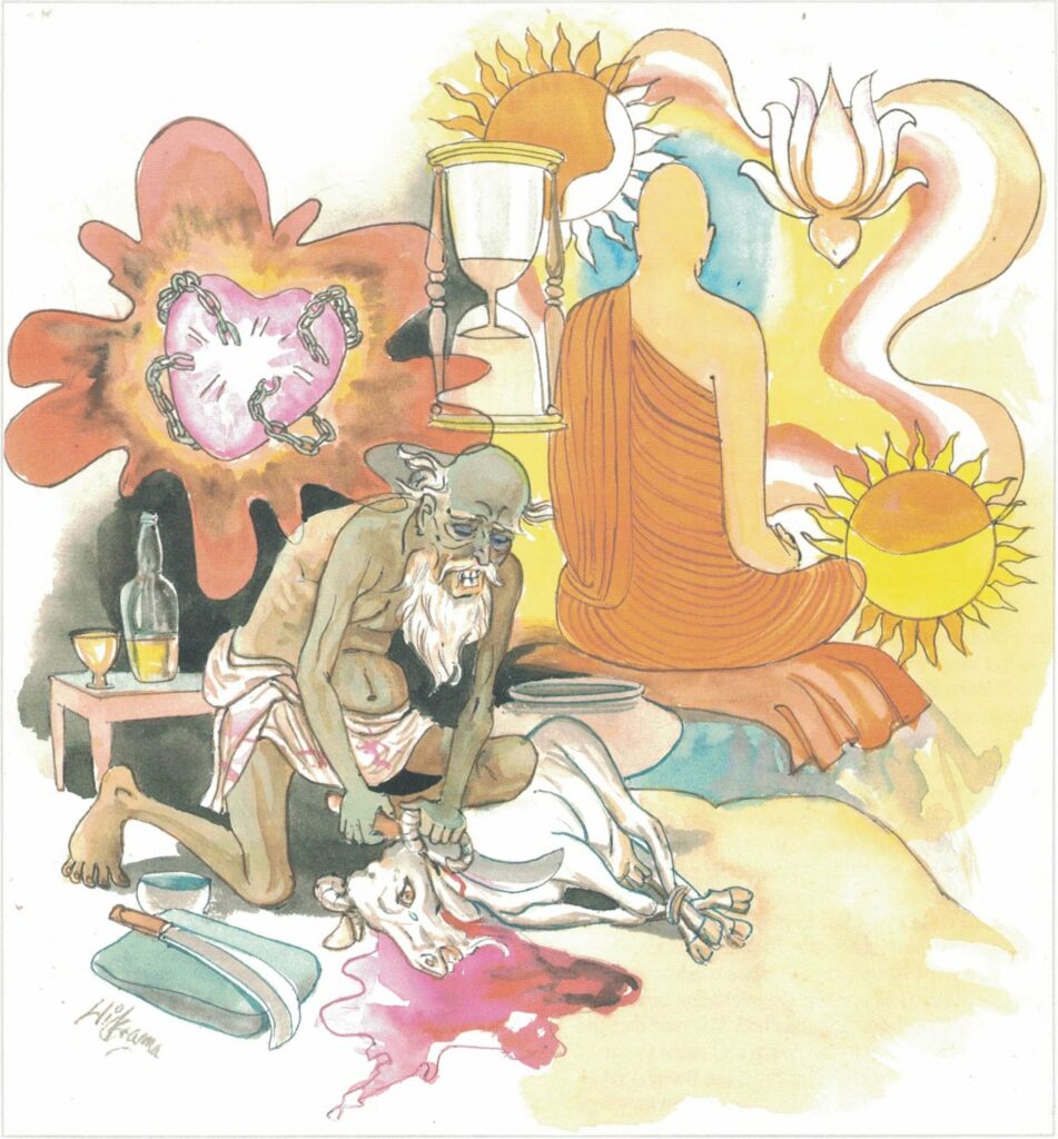 Then Saṃkicca and the five hundred monks continued on their way to pay respect to Venerable Sāriputta, his teacher, at the Jetavana Monastery. After seeing Venerable Sāriputta they went to pay homage to the Buddha. When told what had happened, the Buddha said, “Monks, if you rob or steal and commit all sorts of evil deeds, your life would be useless, even if you were to live a hundred years. Living a virtuous life even for a single day is much better than a hundred years of a life of depravity.”