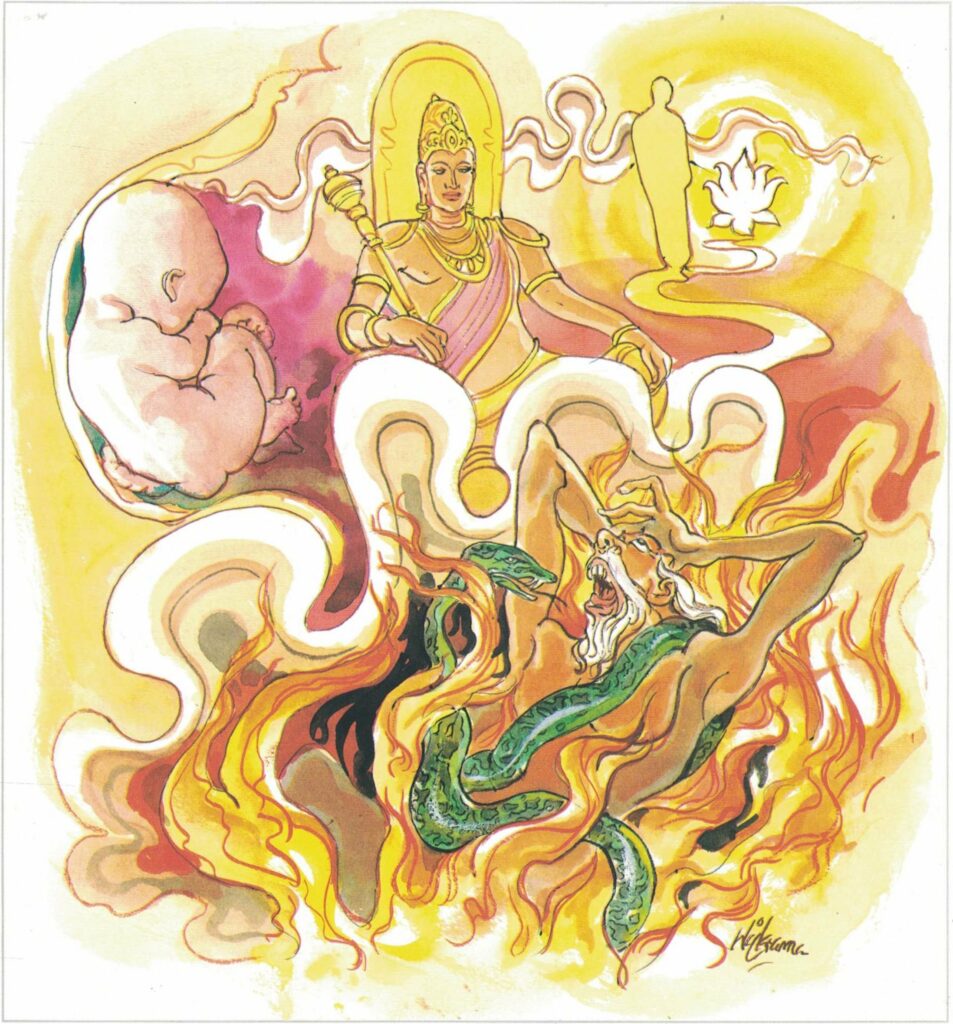 Some, after their death, receive conception in wombs. Those who have committed sins in their life-time are born in hell. Those whose ways have been virtuous when they were alive go to heaven when they die. These blemishless ones who are totally free of taints and corruptions, achieve total Nibbāna, on giving up their mortal lives.