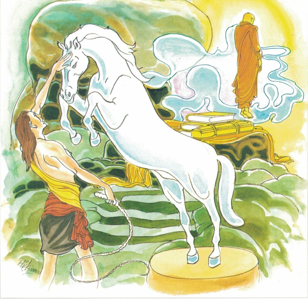 After two or three days, again, he felt like leaving the monastic life of a monk, and again, he went to the tree where he kept his old clothes and his plate. After asking himself the same old question and having been reminded of the wretchedness of his old life, he returned to the monastery. This was repeated many times. When other monks asked him why he often went to the tree where he kept his old clothes and his plate, he told them that he went to see his teacher. Thus keeping his mind on his old clothes as the subject of meditation, he came to realize the true nature of the aggregates of the khandhas, such as anicca, dukkha, anatta, and eventually he became an arahat. Then, he stopped going to the tree. Other monks, noticing that Pilotikatissa had stopped going to the tree where he kept his old clothes and his plate, asked him, “Why don’t you go to your teacher any more?” To them, he answered, ‘When I had the need, I had to go to him; but there is no need for me to go to him now.” When the monks heard his reply, they took him to see the Buddha. When they came to his presence they said, “Venerable! This monk claims that he has attained arahatship; he must be telling lies.” But the Buddha refuted them, and said, “Monks! Pilotikatissa is not telling lies, he speaks the truth. Though he had relationship with his teacher previously, now he has no relationship whatsoever with his teacher. Venerable Pilotikatissa has instructed himself to differentiate right and wrong causes and to discern the true nature of things. He has now become an arahat, and so there is no further connection between him and his teacher.”