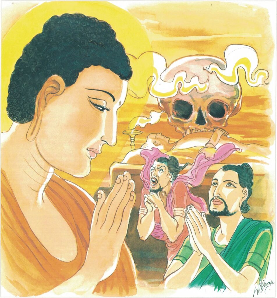 At once the Buddha asked him, “Layman, why are you sad?” “I have lost my son;therefore I am sad,” replied the layman. Said the Buddha, “Grieve not, layman. That which is called death is not confined to one place or to one person, but is common to all creatures who are born into this world. Not one of the elements of being is permanent. Therefore one should not give himself up to sorrow, but should rather take a reasonable view of death, even as it is said, ‘Mortality has suffered mortality, dissolution has suffered dissolution.’