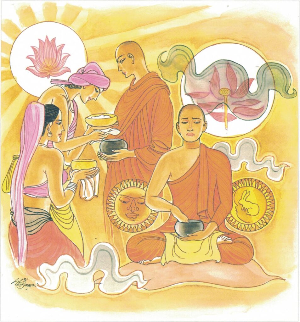 It is said of the novice Tissa that he used to go about finding fault with the gifts of the householder Anāthapiṇḍika, and of the female lay disciple Visākhā, and even of the multitude of noble disciples; he even went so far as to find fault with the Gifts beyond Compare. Whenever he received cold food in their refectory, he would complain because it was cold; whenever he received hot food, he would complain because it was hot. Whenever they gave but a little, he would blame them, saying, “Why do they give so very little?” And whenever they gave abundant alms, he would also blame them, saying, I suppose they had no place in their house to put it;” or, “Surely they should give the monks only so much as they require to support life; so much gruel and boiled rice as this is absolutely wasted.” But with reference to his own kinsfolk, he would say, “Oh, the house of our kinsfolk is a veritable tavern for all the monks who come from all the four quarters!” Thus did he sing the praises of his kinsfolk.