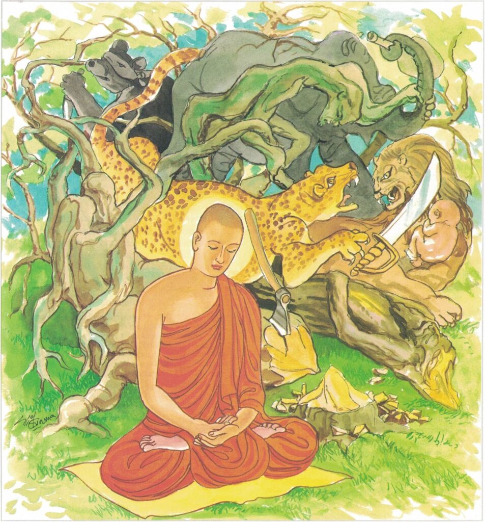 O’ Monks, cut down the forests of defilements. But, do not cut down the trees. Fear comes from the forests of defilements. Clear both the forests and the undergrowth. Having done this achieve the state of Nibbāna.