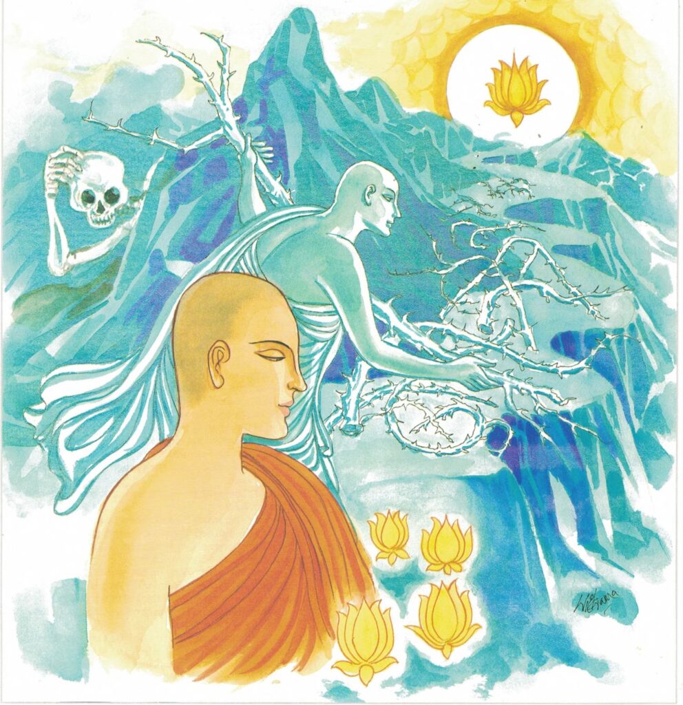 Pali text, illustration and English translation of Dhammapada verse 288-289: