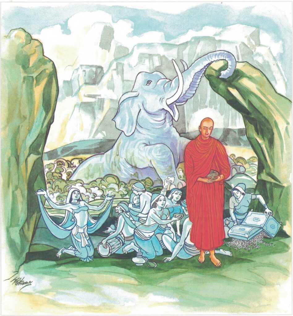 When the monks told the Buddha about this he said, “Monks! Just as that elephant pulled itself out of the mire, so also must you all pull yourselves out of the mire of moral defilements.”