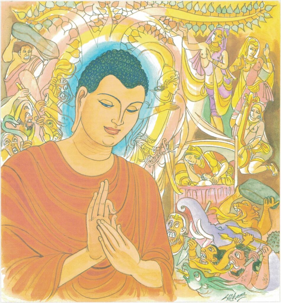 The Buddha spoke this verse in answer to the question put up by Upaka, a non-Buddhist ascetic, while He was on His way to the Deer Park (Migadāya) where the group of five monks (panca vaggis) were staying. The Buddha was going there to expound the Dhammacakkappavattana Sutta to the panca vaggis, his old associates, viz., Kondanna, Bhaddiya, Vappa, Assaji, and Mahānāma. When Upaka saw the Buddha, he was very much impressed by His radiant countenance and so said to him, “Friend, you look so serene and pure; may I know who your teacher is?” To him, the Buddha replied that he had no teacher.