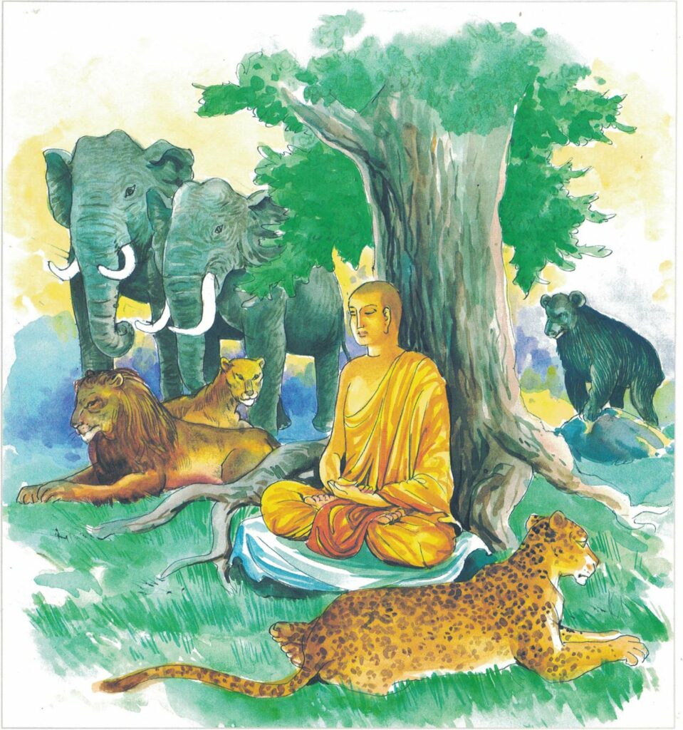 While residing at the Jetavana Monastery, the Buddha spoke these verses, with reference to the monk Cittahattha. A certain youth of a respectable family, a herdsman, living at Sāvatthi, went into the forest to look for an ox that was lost. During midday, he saw the ox and released the herds, and being oppressed by hunger and thirst, he thought to himself, “I can surely get something to eat from the noble monks.” So he entered the monastery, went to the monks, bowed to them, and stood respectfully on one side. Now at that time the food which remained over and above to the monks who had eaten lay in the vessel used for refuse. When the monks saw that youth, exhausted by hunger as he was, they said to him, “Here is food; take and eat it.” (When a Buddha is living in the world, there is always a plentiful supply of rice-porridge, together with various sauces). So the youth took and ate as much food as he needed drank water, washed his hands, and then bowed to the monks and asked them, “Venerable, did you go to some house by invitation today?” “No, lay disciple; monks always receive food in this way.”