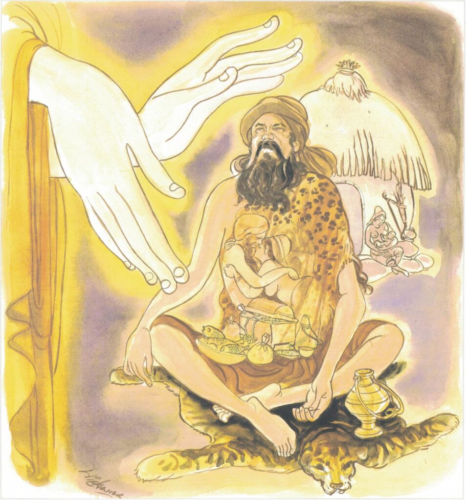 Once upon a time a certain ascetic lodged near a certain village of farmers, and this ascetic was a hypocrite. Now there was a certain family that used to look after his needs: by day, of the food, whether hard or soft, they always gave a portion to the ascetic just as they did to their own children; and in the evening they would set aside a portion of the food prepared for their supper, and give it to him on the following day.