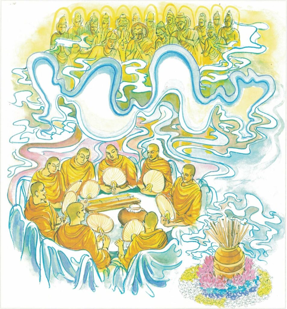 “Venerable, this is the explanation. Before the Buddha appeared in the world I performed works of merit. When the Buddha appeared in the world, three deities of equal rank were reborn who, by the performance of works of merit, possessed greater glory than I. When these deities say in my presence, ‘Let us make holiday,’ and take female slaves and go down into the street, I take to my heels and enter my house. The glory from their persons overpowers my person, but the glory from my person does not overpower their persons. Who, Venerable, is poorer than I?” “If this be true, henceforth do not attempt to deceive me by giving alms to me.” “Have I acquired merit, or have I not acquired merit, by giving alms to you through deception?” “You have acquired merit, brother.” “If this be true, Venerable, it is my bounden duty to perform works of merit.” So saying, Sakka saluted the Venerable, and accompanied by Sujātā, circumbulated the Venerable.