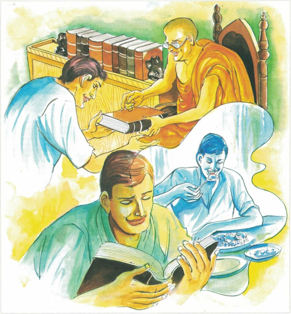 If a wise person were to associate with a wise person, even for one moment, he will quickly understand the Teaching. This is very much like the tongue being able to discern the subtle flavours of soup. This stanza could be further appreciated when you contrast it with the previous one. In the previous one the image used is the spoon. Though it serves tasty food endlessly, it just cannot appreciate how food tastes, very much like a foolish individual being unable to appreciate the teaching even when he keeps company with the wise. An intelligent man, even though he is associated with a wise man only for a moment, quickly understands the Dhamma, just as the tongue knows the taste of the soup.