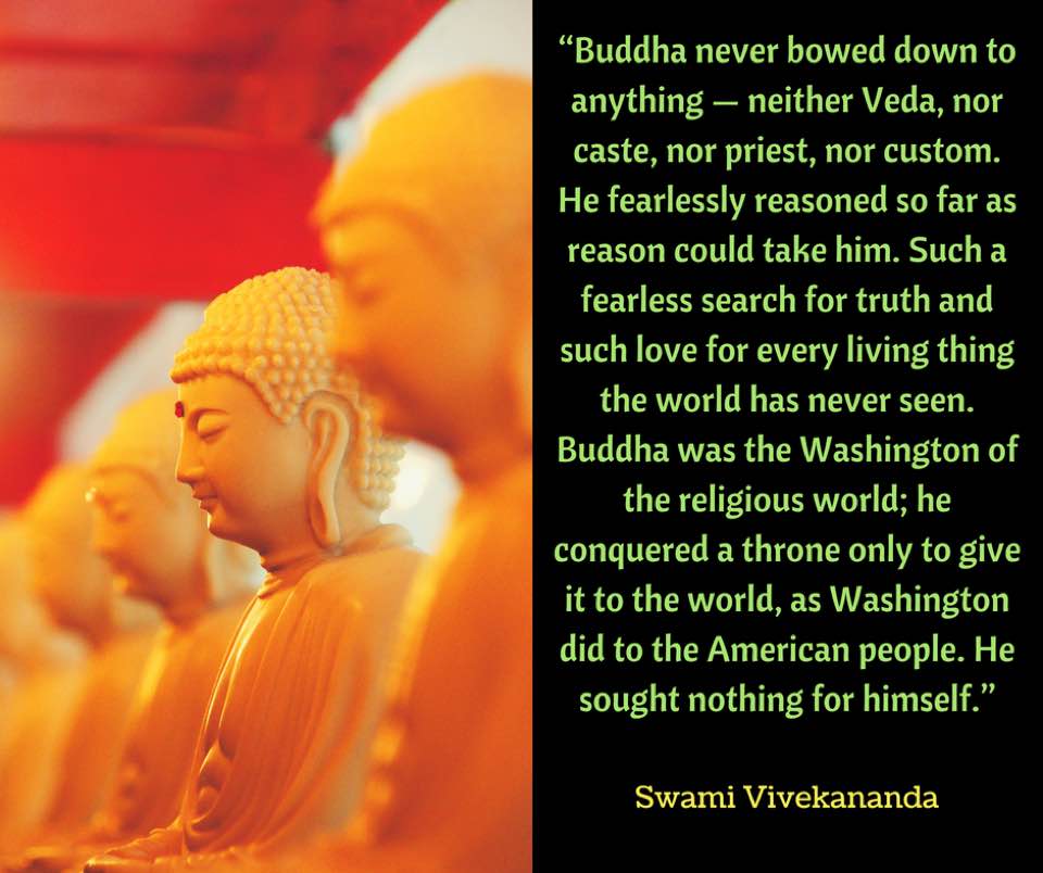 - Buddha was a great Vedantist (for Buddhism was really only an offshoot of Vedanta), and Shankara is often called a “hidden Buddhist”. Buddha made the analysis, Shankara made the synthesis out of it. Buddha never bowed down to anything — neither Veda, nor caste, nor priest, nor custom. He fearlessly reasoned so far as reason could take him. Such a fearless search for truth and such love for every living thing the world has never seen. Buddha was the Washington of the religious world; he conquered a throne only to give it to the world, as Washington did to the American people. He sought nothing for himself.[Source]