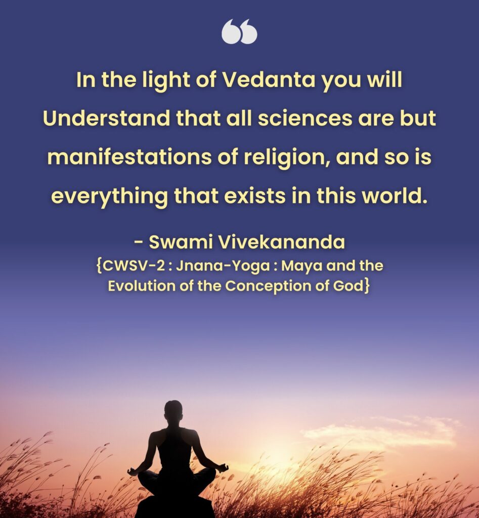 - In the light of Vedanta you will Understand that all sciences are but manifestations of religion, and so is everything that exists in this world.[Source]