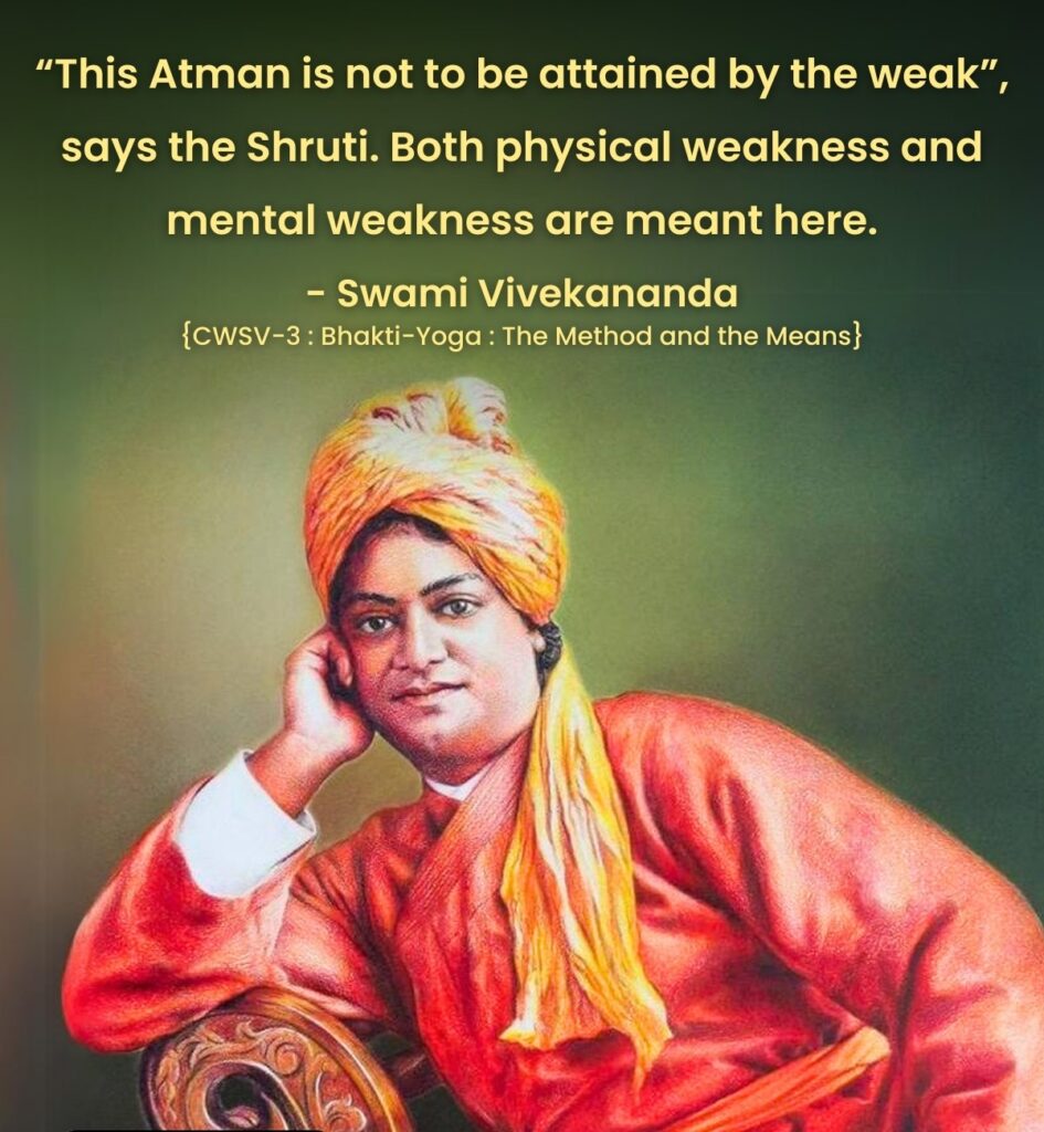 - “This Atman is not to be attained by the weak”, says the Shruti. Both physical weakness and mental weakness are meant here.[Source]