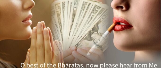 विषयेन्द्रियसंयोगाद्यत्तदग्रेऽमृतोपमम् |परिणामे विषमिव तत्सुखं राजसं स्मृतम् || 38|| viṣhayendriya-sanyogād yat tad agre ’mṛitopamampariṇāme viṣham iva tat sukhaṁ rājasaṁ smṛitam viṣhaya—with …